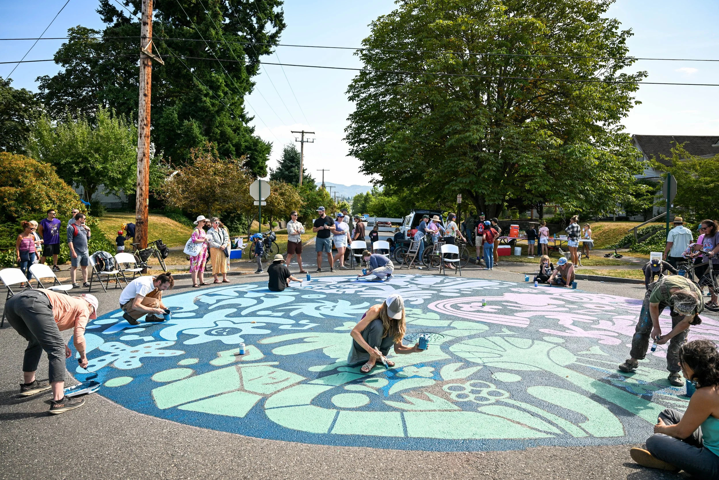 The Sunnyland Stomp was founded in 2009 by Alice Clark, who was inspired to organize an event in her own neighborhood after attending a similar summer celebration while traveling in Scandinavia. In 2010 the Stomp was recognized with a Mayor’s Arts Award, and since then, more and more people visit the Sunnyland Neighborhood each July to check out the surprises our hosts have in store on Stomp Saturday. While every Stomp-er has a special place in our hearts, we were particularly giddy in 2022 to spot Rick Steves, renowned travel writer and television personality, Stomping around the neighborhood. Each year, there is always something new to discover at the Stomp - we hope to see you in Sunnyland this summer!